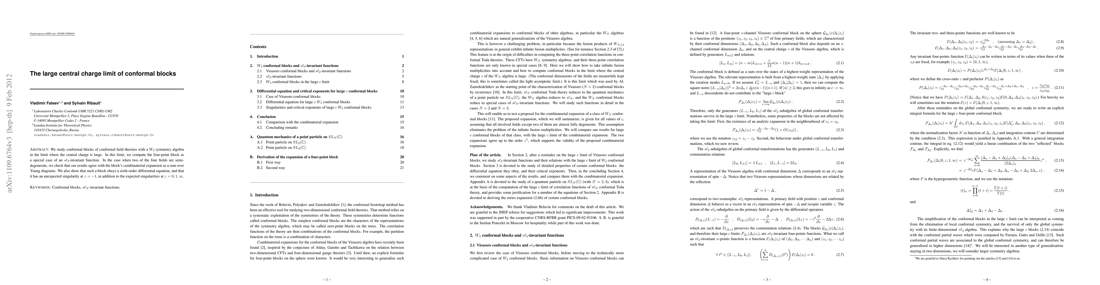 This paper investigates conformal blocks in large central charge limits of W3 symmetry algebra conformal field theories, specifically computing the four-point block as an sl3-invariant function. It finds agreement with combinatorial expansions and reveals an unexpected singularity at z=-1, alongside expected singularities at z=0,1,infinity.
