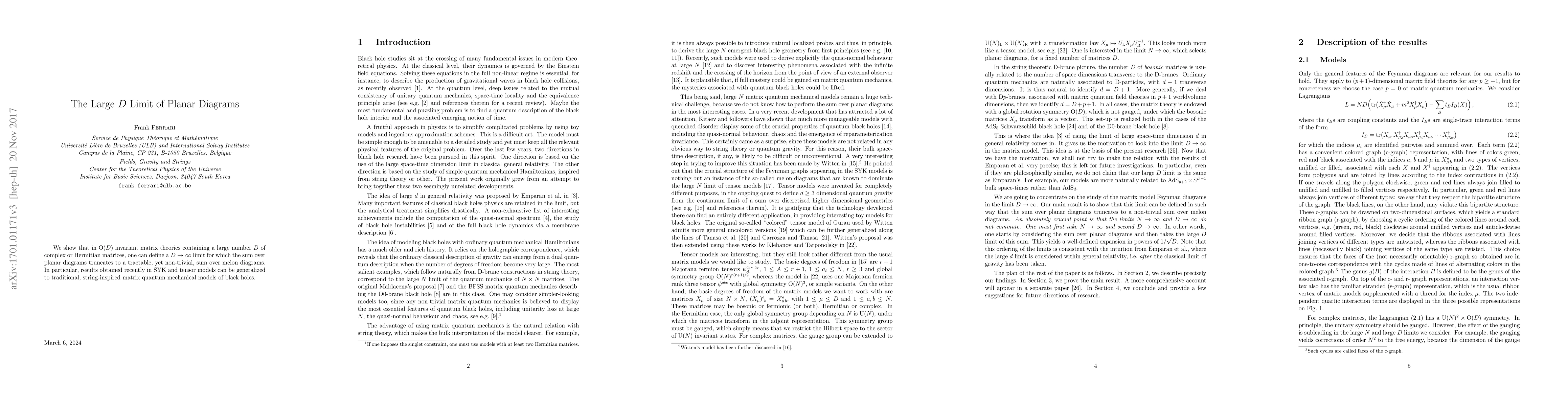 This paper demonstrates a $D\rightarrow\infty$ limit in $\text{O}(D)$ invariant matrix theories where the sum over planar diagrams simplifies to a manageable sum over melon diagrams, extending recent findings in SYK and tensor models to traditional matrix quantum mechanical models of black holes.