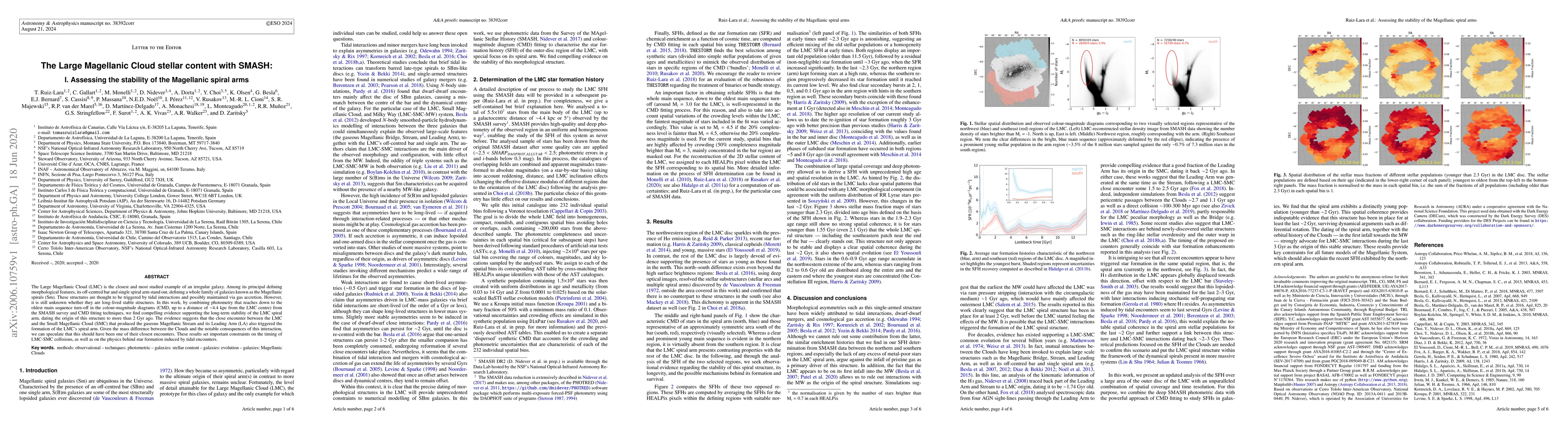 The Large Magellanic Cloud (LMC) is the closest and most studied example of an irregular galaxy. Among its principal defining morphological features, its off-centred bar and single spiral arm stand out, defining a whole family of galaxies known as the Magellanic spirals (Sm). These structures are thought to be triggered by tidal interactions and possibly maintained via gas accretion. However, it is still unknown whether they are long-lived stable structures. In this work, by combining photometry that reaches down to the oldest main sequence turn-off in the colour-magnitude diagrams (CMD, up to a distance of $\sim$4.4 kpc from the LMC centre) from the SMASH survey and CMD fitting techniques, we find compelling evidence supporting the long-term stability of the LMC spiral arm, dating the origin of this structure to more than 2~Gyr ago. The evidence suggests that the close encounter between the LMC and the Small Magellanic Cloud (SMC) that produced the gaseous Magellanic Stream and its Leading Arm (LA) also triggered the formation of the LMC's spiral arm. Given the mass difference between the Clouds and the notable consequences of this interaction, we can speculate that this should have been one of their closest encounters. These results set important constraints on the timing of LMC-SMC collisions, as well as on the physics behind star formation induced by tidal encounters.