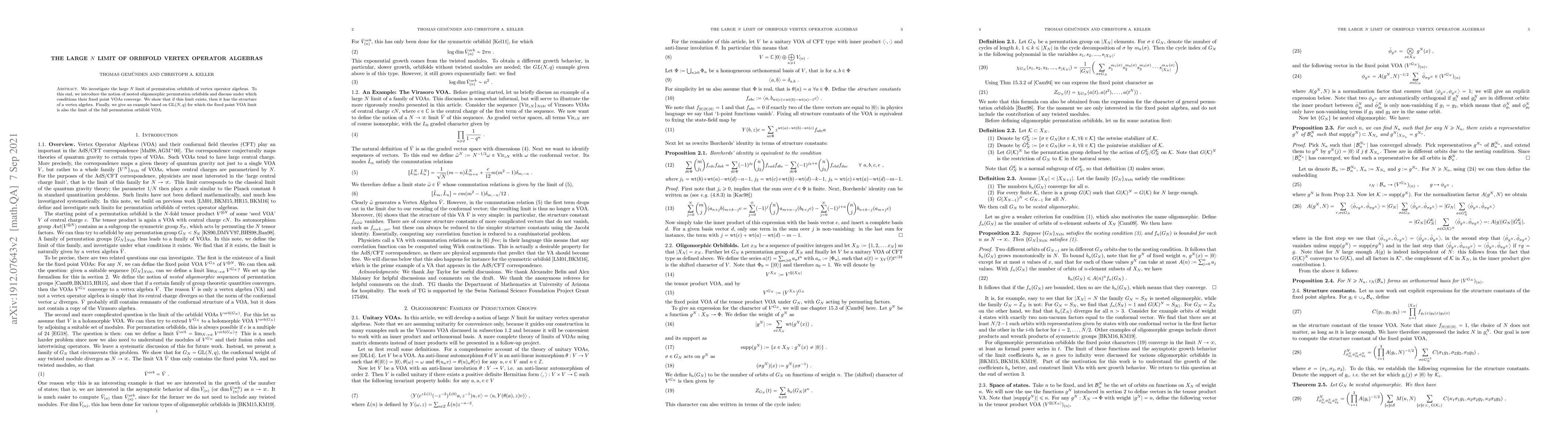 We investigate the large $N$ limit of permutation orbifolds of vertex operator algebras. To this end, we introduce the notion of nested oligomorphic permutation orbifolds and discuss under which conditions their fixed point VOAs converge. We show that if this limit exists, then it has the structure of a vertex algebra. Finally, we give an example based on $\mathrm{GL}(N,q)$ for which the fixed point VOA limit is also the limit of the full permutation orbifold VOA.