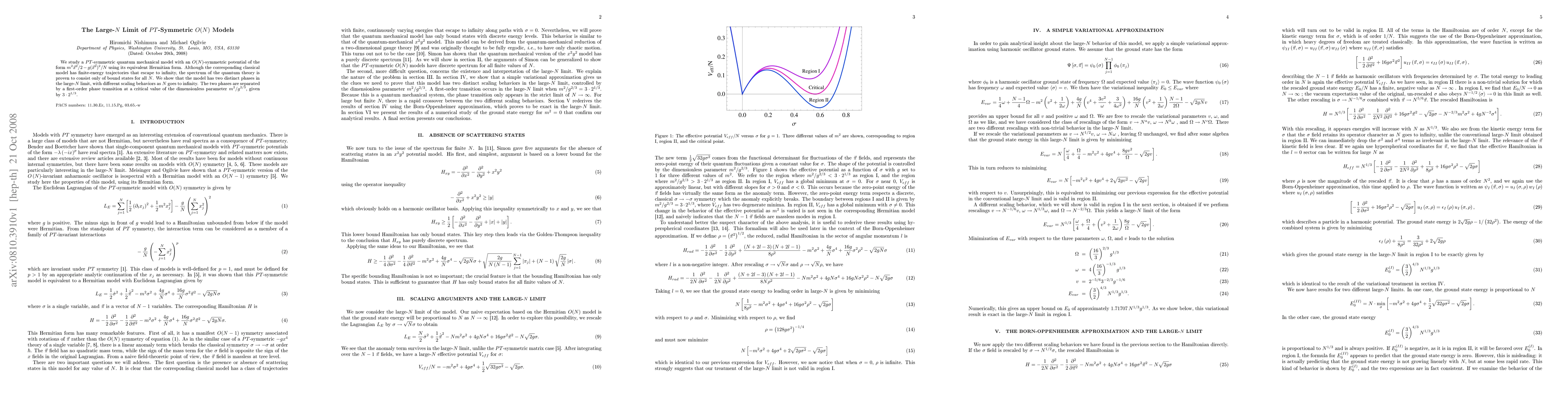 A study of a $PT$-symmetric quantum model with an O(N)-symmetric potential finds that it consists only of bound states for large N, exhibiting two distinct phases separated by a first-order phase transition at a critical dimensionless parameter value.