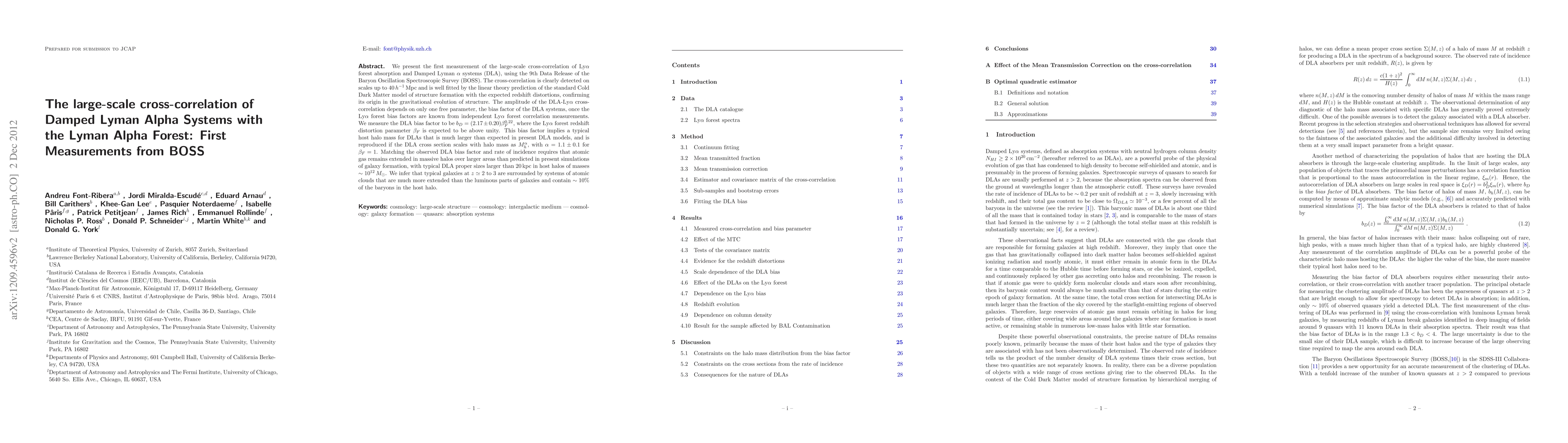 This study measures the large-scale cross-correlation between Damped Lyman Alpha Systems (DLA) and Lyman Alpha Forest using BOSS data, confirming its origin in gravitational structure evolution. The DLA bias factor suggests a larger host halo mass and extended atomic gas than current models predict, indicating typical galaxies at z ~ 2 to 3 are surrounded by extensive atomic cloud systems.
