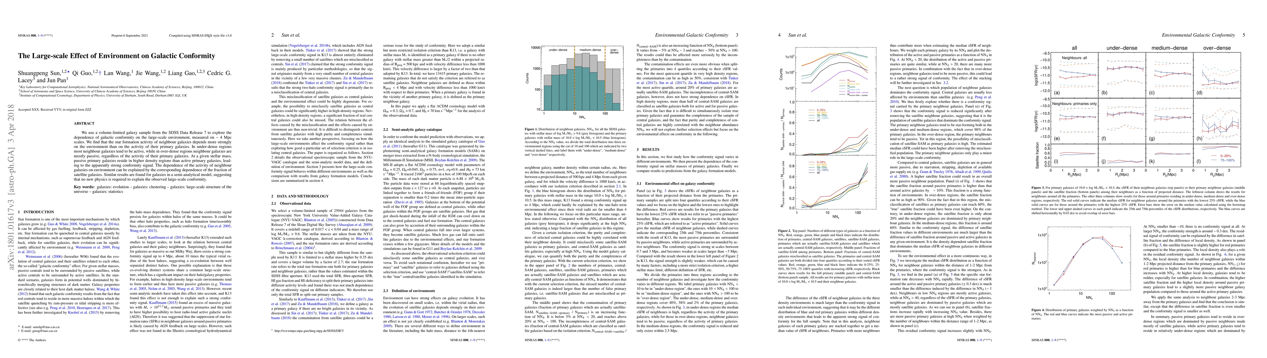 Galactic conformity is influenced more strongly by large-scale environment than primary galaxy activity, with neighbour galaxies in under-dense regions being mostly active and those in over-dense regions passive.