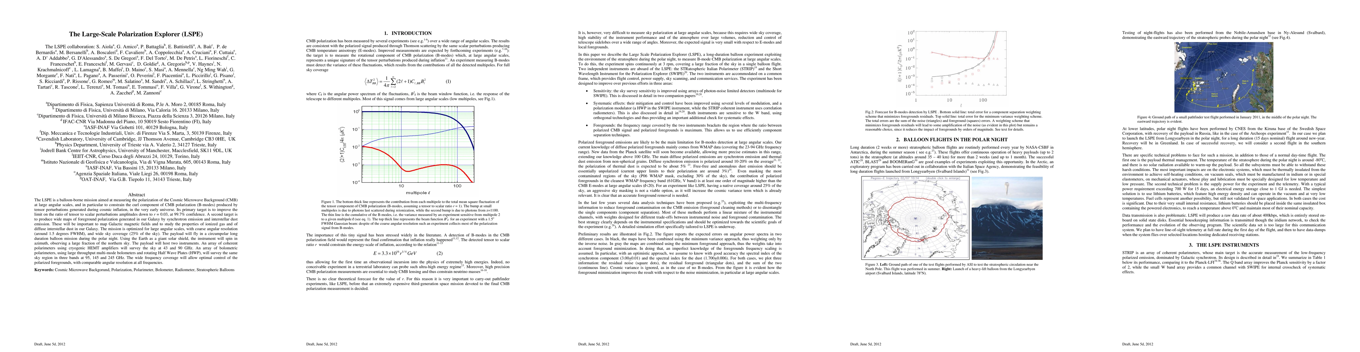 The LSPE balloon-borne mission aims to measure CMB polarization to constrain B-modes from cosmic inflation, targeting a tensor to scalar perturbation ratio limit of r = 0.03. It will also map Galactic foreground polarization to study magnetic fields and interstellar dust.