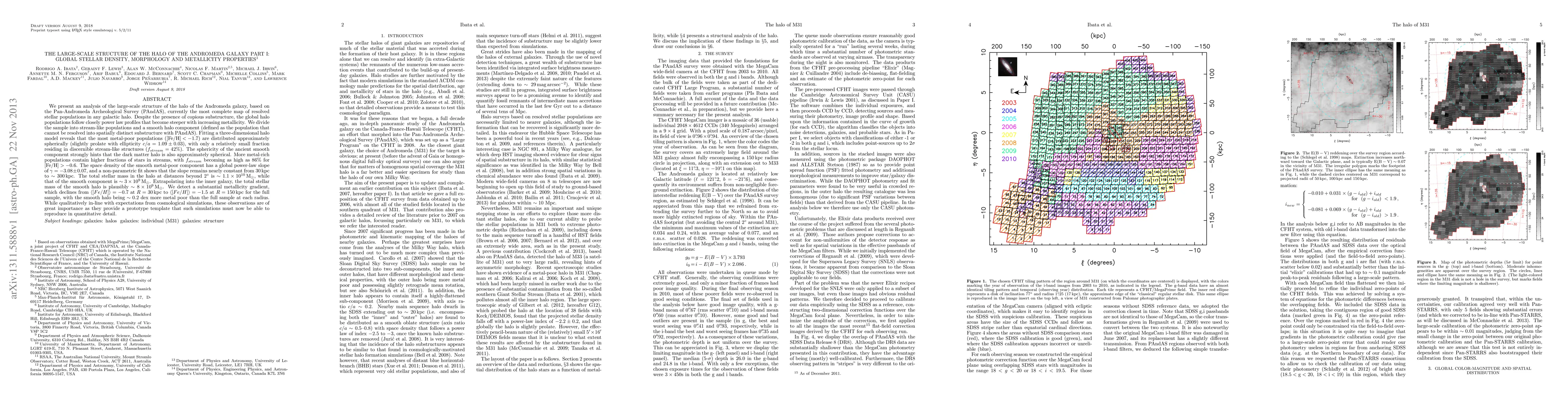 This paper analyzes the large-scale structure of the Andromeda Galaxy's halo using the PAndAS survey, revealing a predominantly spherical, metal-poor smooth component and a more metal-rich, stream-dominated structure. The smooth component's sphericity suggests a similarly shaped dark matter halo.