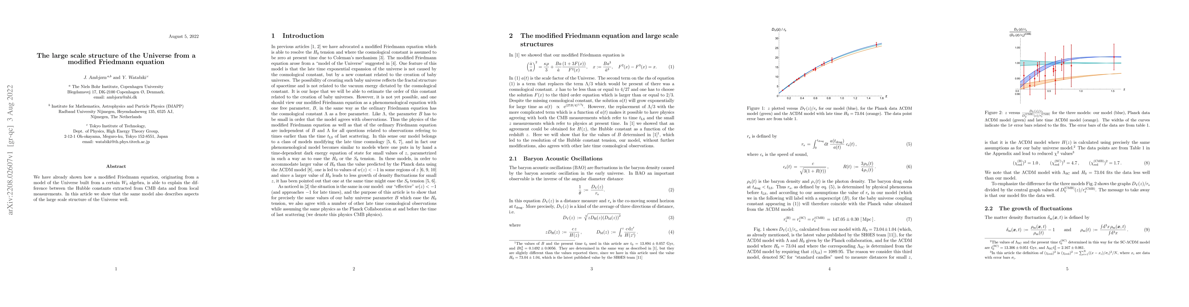Summary: This paper demonstrates that a modified Friedmann equation derived from a $W_3$ algebra model can reconcile the discrepancy between Hubble constants from CMB and local measurements, and further shows that it effectively describes the large scale structure of the Universe.