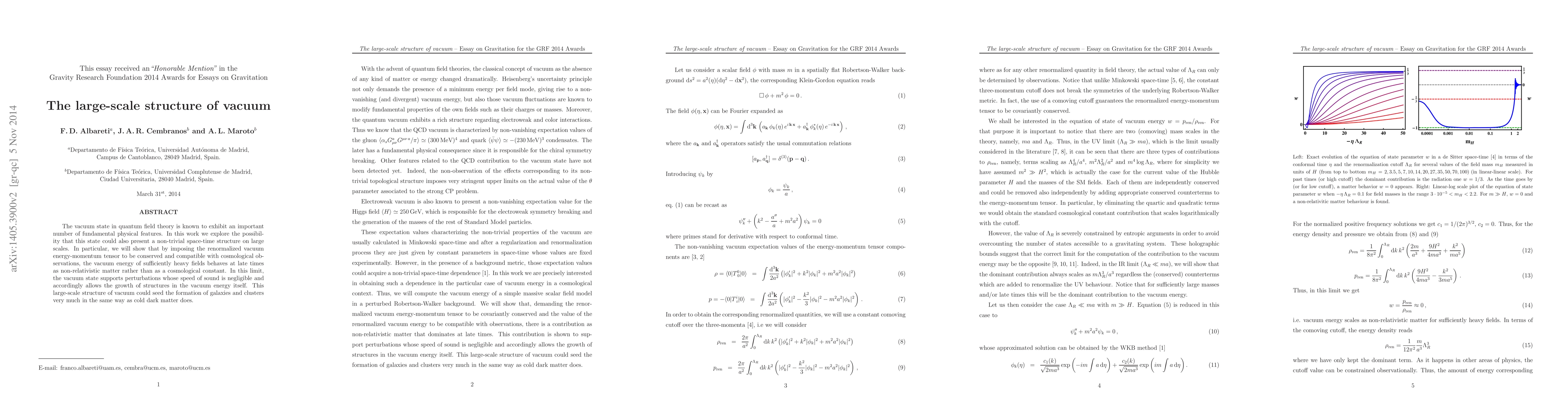 The vacuum state in quantum field theory is known to exhibit an important number of fundamental physical features. In this work we explore the possibility that this state could also present a non-trivial space-time structure on large scales. In particular, we will show that by imposing the renormalized vacuum energy-momentum tensor to be conserved and compatible with cosmological observations, the vacuum energy of sufficiently heavy fields behaves at late times as non-relativistic matter rather than as a cosmological constant. In this limit, the vacuum state supports perturbations whose speed of sound is negligible and accordingly allows the growth of structures in the vacuum energy itself. This large-scale structure of vacuum could seed the formation of galaxies and clusters very much in the same way as cold dark matter does.