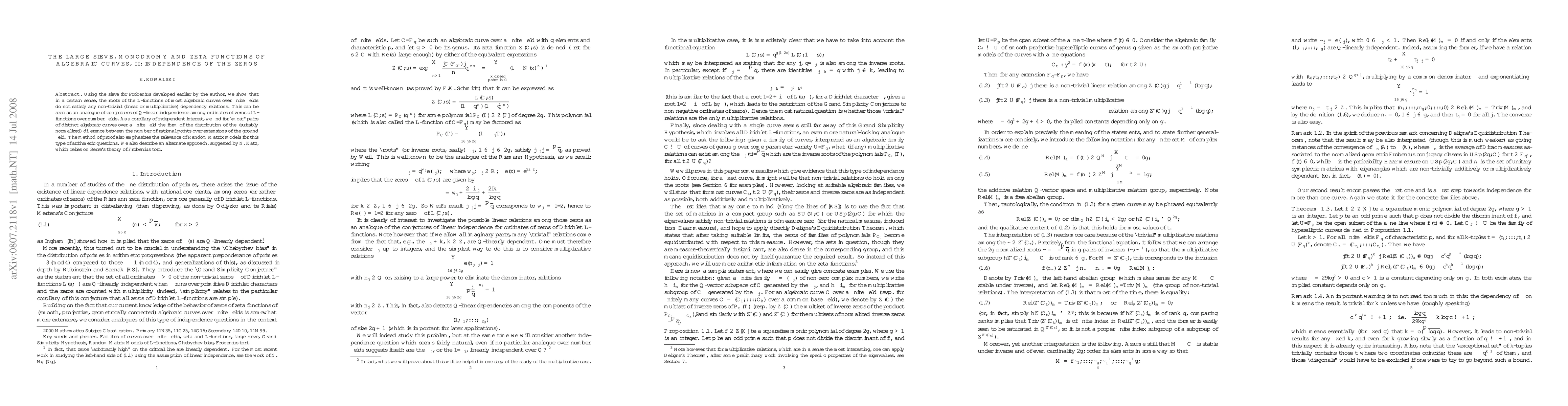 This paper demonstrates the independence of zeros of L-functions for most algebraic curves over finite fields using the large sieve for Frobenius. It establishes a connection to Random Matrix models and provides an alternative proof via Serre's theory of Frobenius tori.