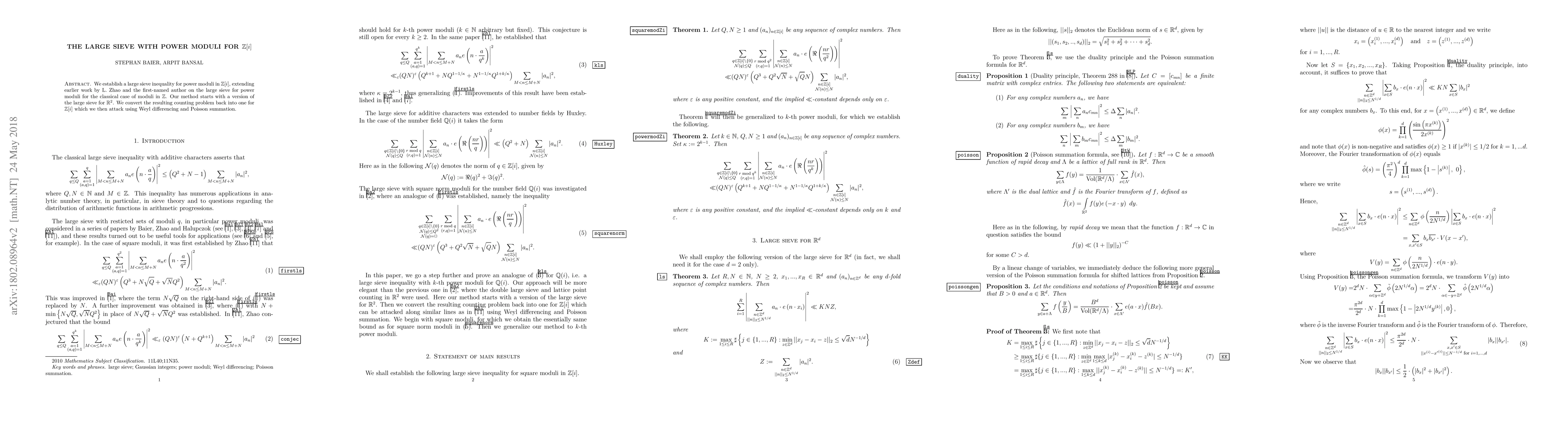 This paper establishes a large sieve inequality for power moduli in $\mathbb{Z}[i]$, extending previous results for $\mathbb{Z}$. The authors utilize a method starting from a large sieve for $\mathbb{R}^2$ and apply Weyl differencing and Poisson summation to solve the resulting counting problem.