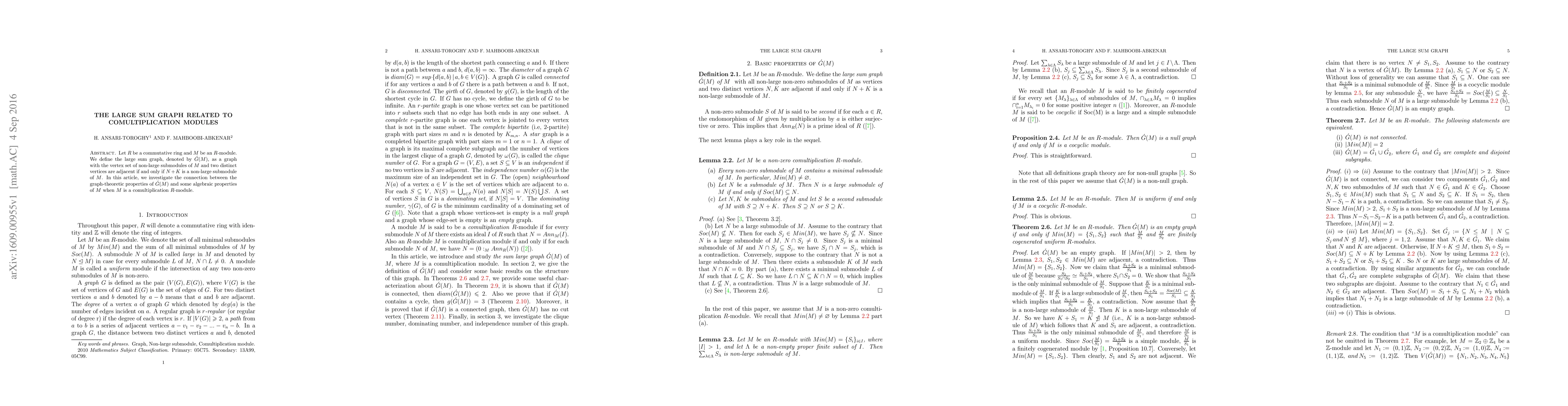 Let R be a commutative ring and M be an R-module. We define the large sum graph, denoted by \acute{G}(M), as a graph with the vertex set of non-large submodules of M and two distinct vertices are adjacent if and only if N + K is a non-large submodule of M. In this article, we investigate the connection between the graph-theoretic properties of \acute{G}(M) and some algebraic properties of M when M is a comultiplication R-module.