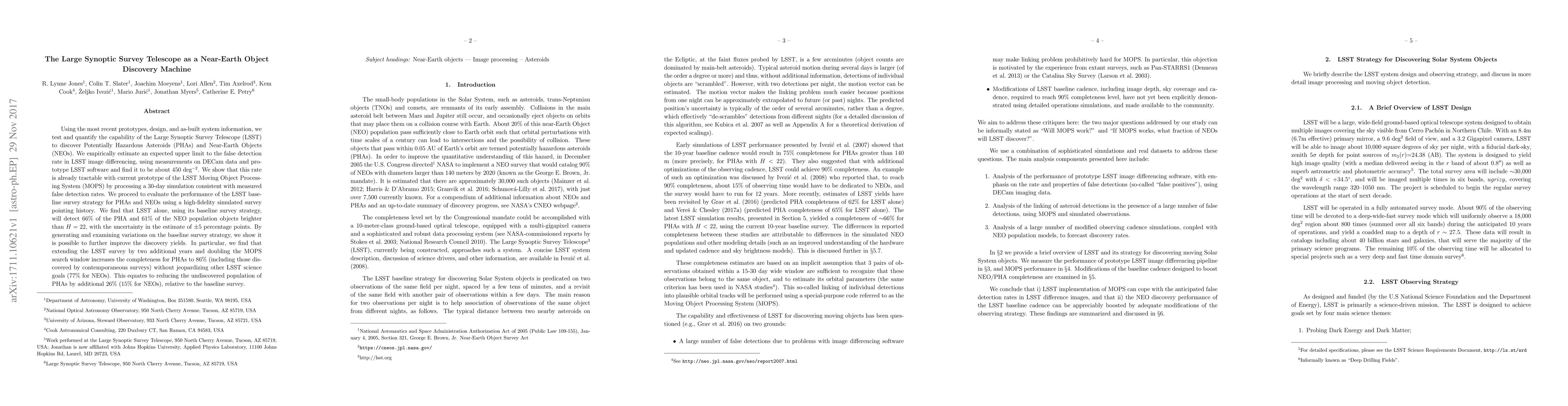 The Large Synoptic Survey Telescope (LSST) is projected to detect 66% of Potentially Hazardous Asteroids (PHAs) and 61% of Near-Earth Objects (NEOs) with a false detection rate of about $450$~deg$^{-2}$. Extending the survey by two years and enhancing the processing system could increase PHA detection to 86%.