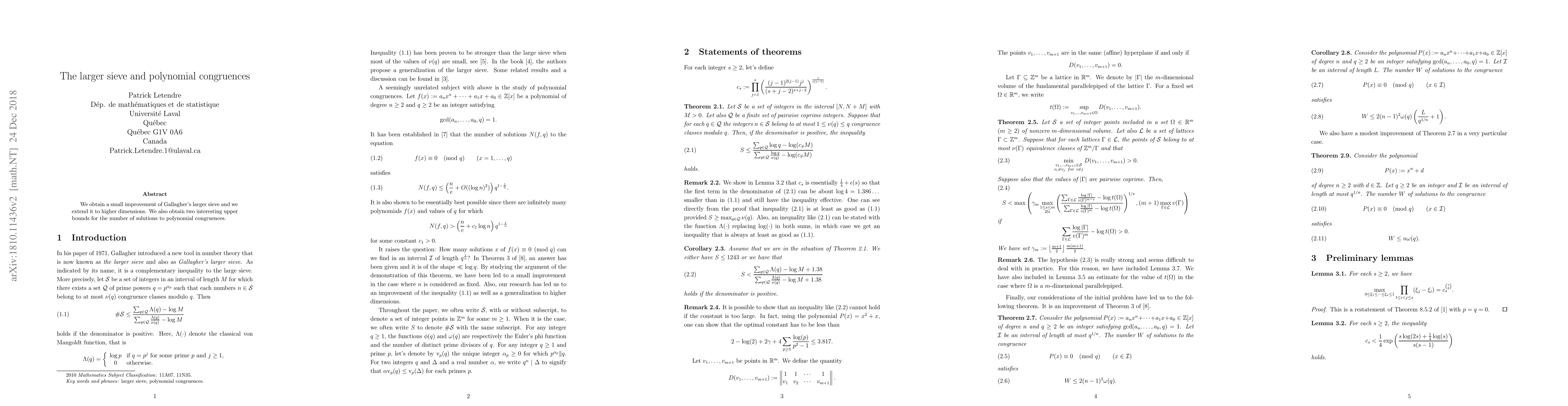 We obtain a small improvement of Gallagher's larger sieve and we extend it to higher dimensions. We also obtain two interesting upper bounds for the number of solutions to polynomial congruences.