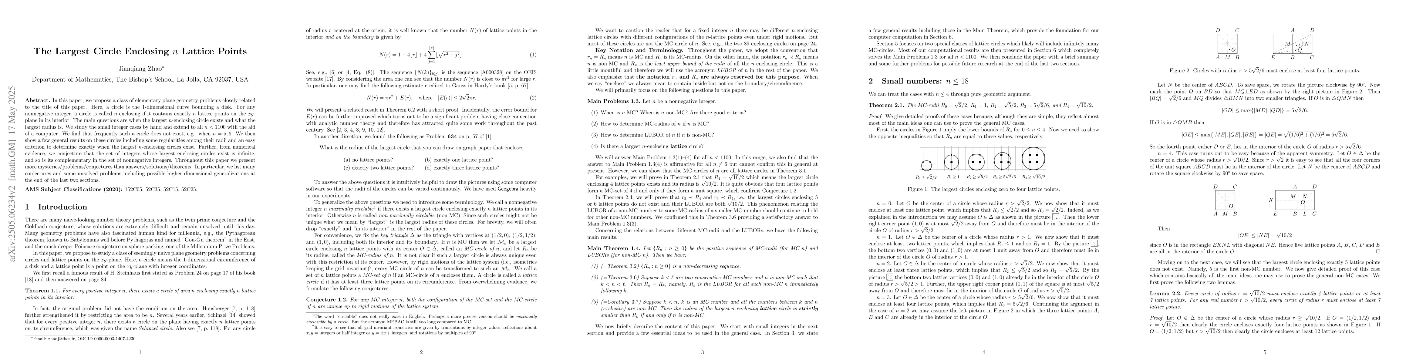The research combines elementary geometric problems with computational techniques, uncovering patterns and conjectures that extend previous work on lattice points and circle enclosures.