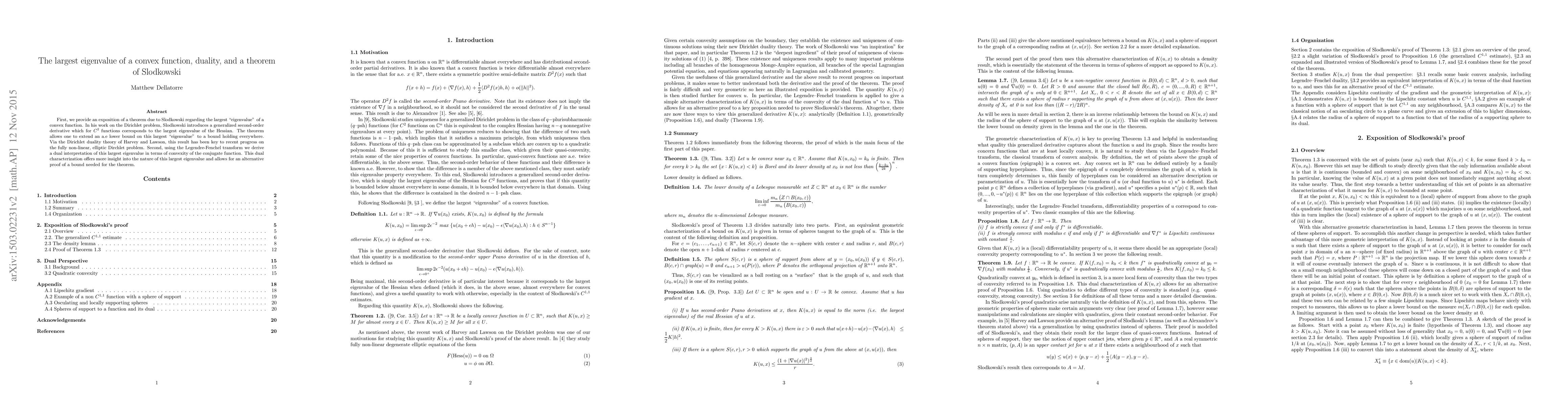 This paper expounds on Slodkowski's theorem regarding the largest eigenvalue of a convex function, extending a local lower bound to a global one, and applies it to progress in the fully non-linear Dirichlet problem. It also offers a dual perspective using the Legendre-Fenchel transform and provides an alternative proof for a key step in the theorem.