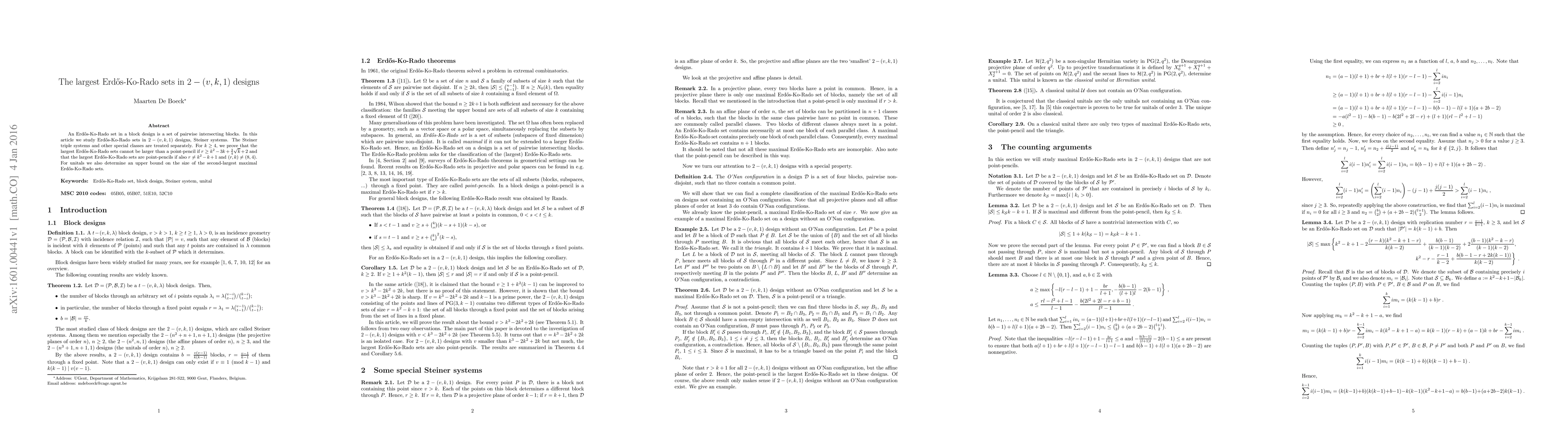 This paper investigates the largest Erdős-Ko-Rado sets in 2-(v,k,1) design block structures, specifically Steiner systems, and provides separate treatment for Steiner triple systems and unitals, including an upper bound on the size of the second-largest maximal Erdős-Ko-Rado sets for unitals.