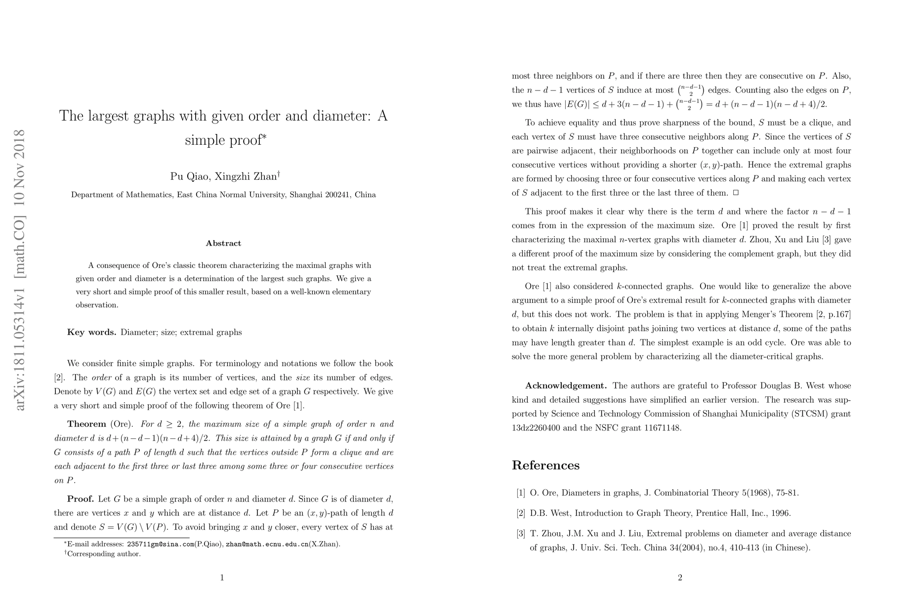 Researchers prove that the largest graphs with a given order and diameter can be determined using a simple observation, resolving a smaller version of Ore's classic theorem.
