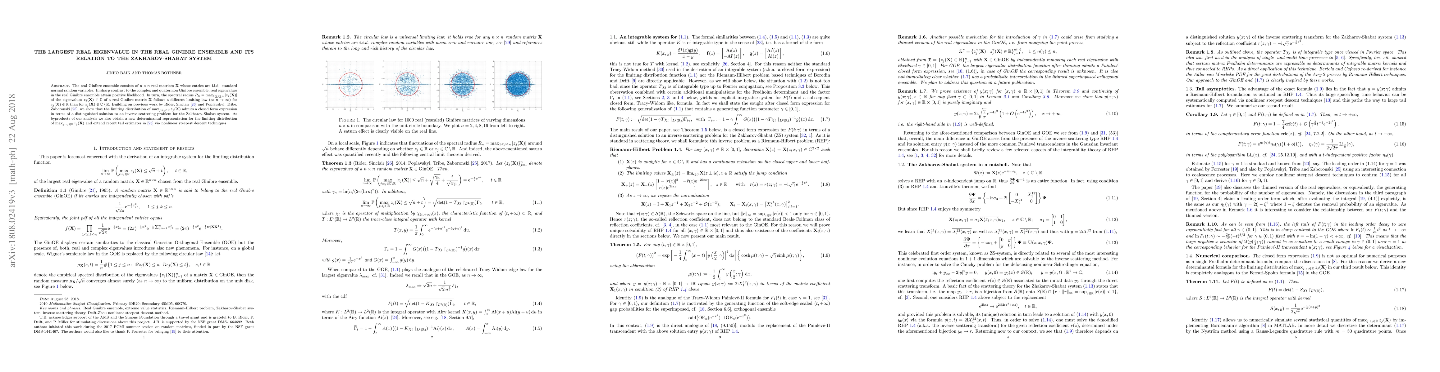 This paper investigates the largest real eigenvalue in the real Ginibre ensemble, demonstrating its limiting distribution is linked to the Zakharov-Shabat system. The study provides a closed form expression for this distribution and extends previous tail estimates using nonlinear steepest descent techniques.