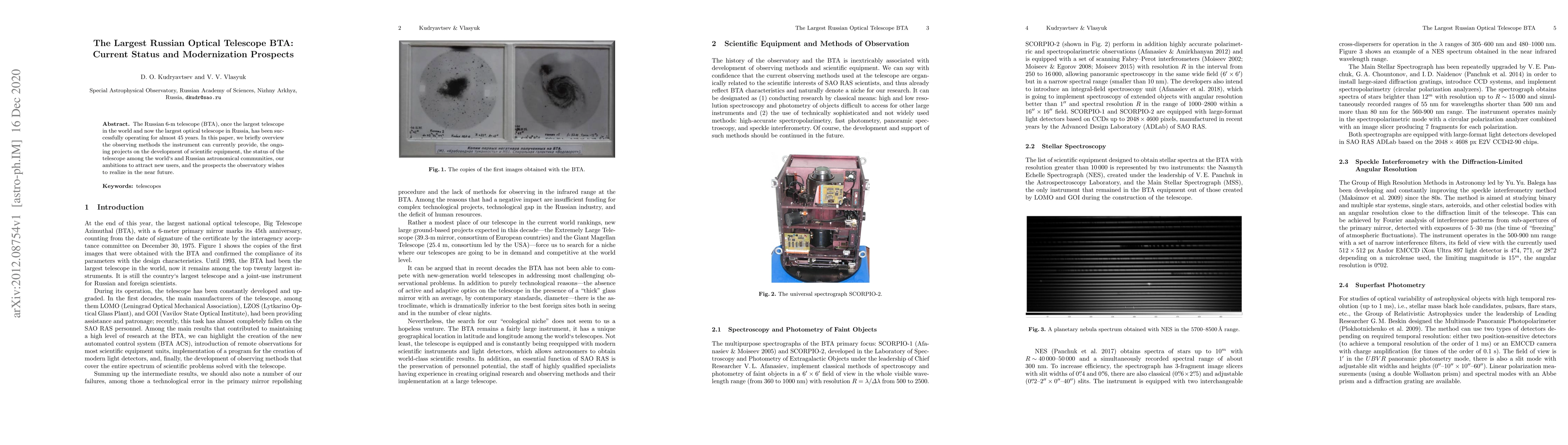 This paper reviews the current operations and modernization plans for the BTA, the largest Russian optical telescope, highlighting its ongoing projects, its status in global and national astronomy, and its future goals to attract new users. Plans for further development and enhancements are also discussed.