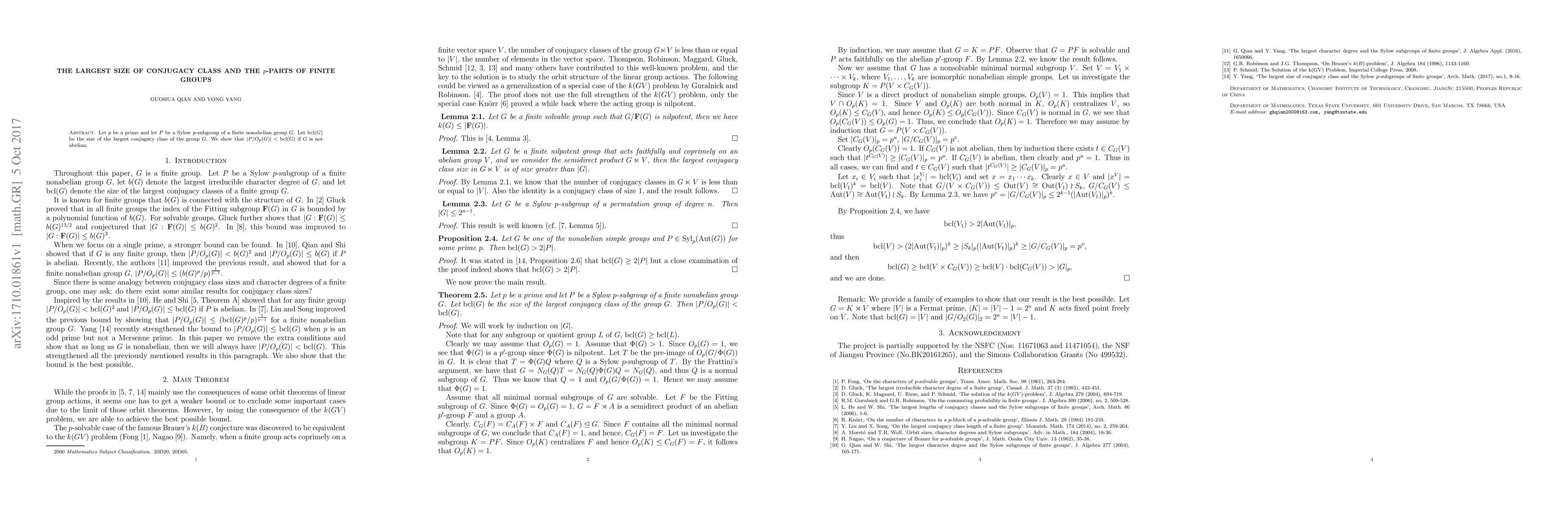 This research paper shows that for non-abelian finite groups, the size of the largest conjugacy class is greater than the number of elements in the smallest Sylow p-subgroup divided by its index in the group.