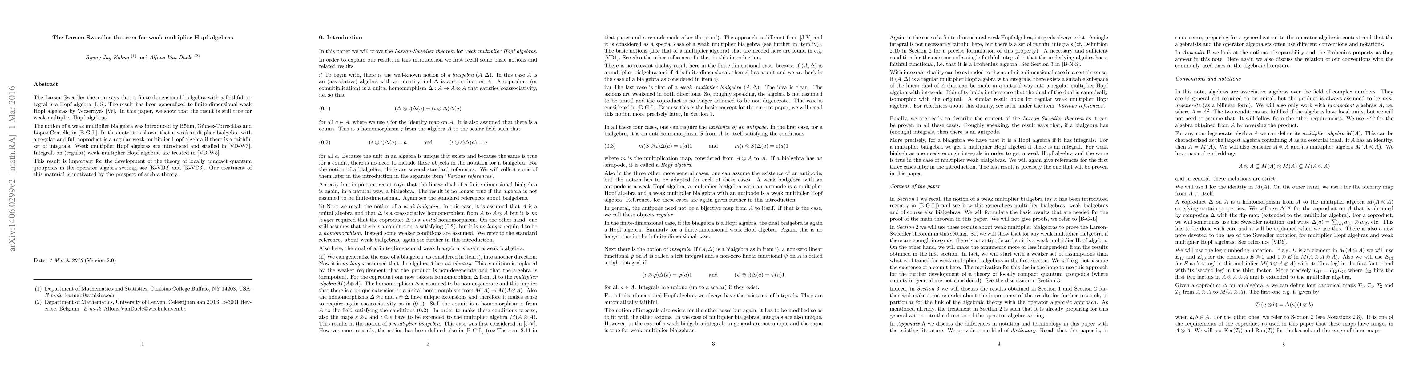 The Larson-Sweedler theorem says that a finite-dimensional bialgebra with a faithful integral is a Hopf algebra. The result has been generalized to finite-dimensional weak Hopf algebras by Vecserny\'es. In this paper, we show that the result is still true for weak multiplier Hopf algebras. The notion of a weak multiplier bialgebra was introduced by B\"ohm, G\'omez-Torrecillas and L\'opez-Centella. In this note it is shown that a weak multiplier bialgebra with a regular and full coproduct is a regular weak multiplier Hopf algebra if there is a faithful set of integrals. This result is important for the development of the theory of locally compact quantum groupoids in the operator algebra setting. Our treatment of this material is motivated by the prospect of such a theory.