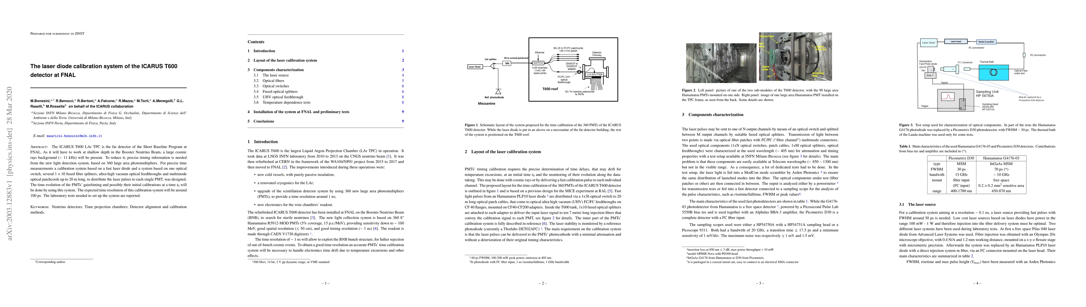 This paper describes the laser diode calibration system designed for the ICARUS T600 LAr TPC detector at FNAL to mitigate cosmic ray background noise. The system uses a fast laser diode and optical components to precisely calibrate the timing of 360 photomultipliers, aiming for a time resolution of around 100 ps.