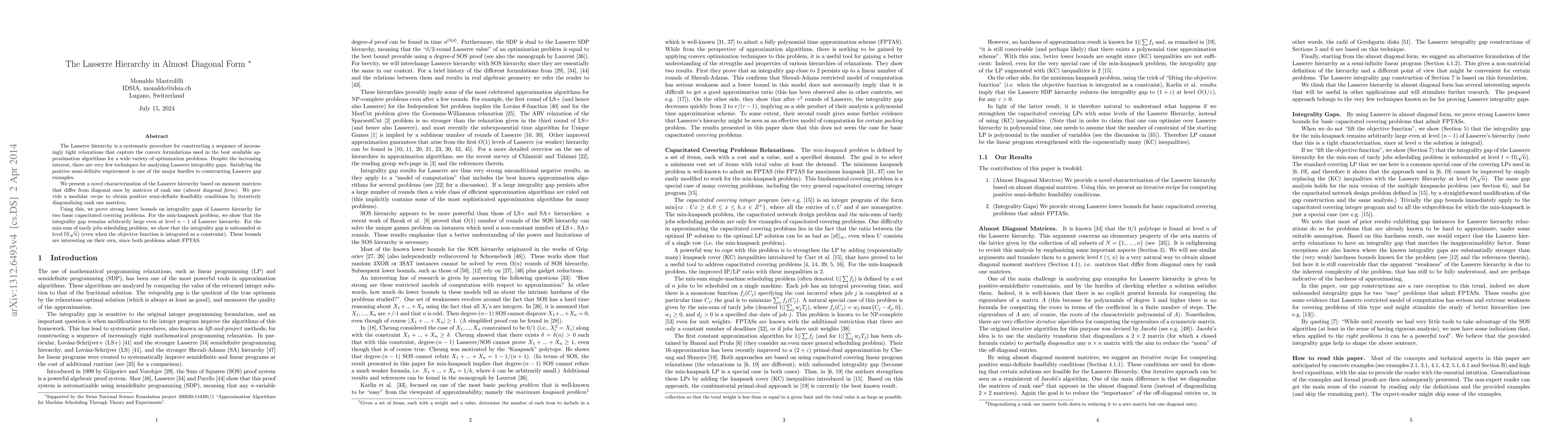 The paper introduces a novel characterization of the Lasserre hierarchy based on moment matrices differing from diagonal ones by rank-one matrices, along with a method for ensuring positive semi-definiteness.