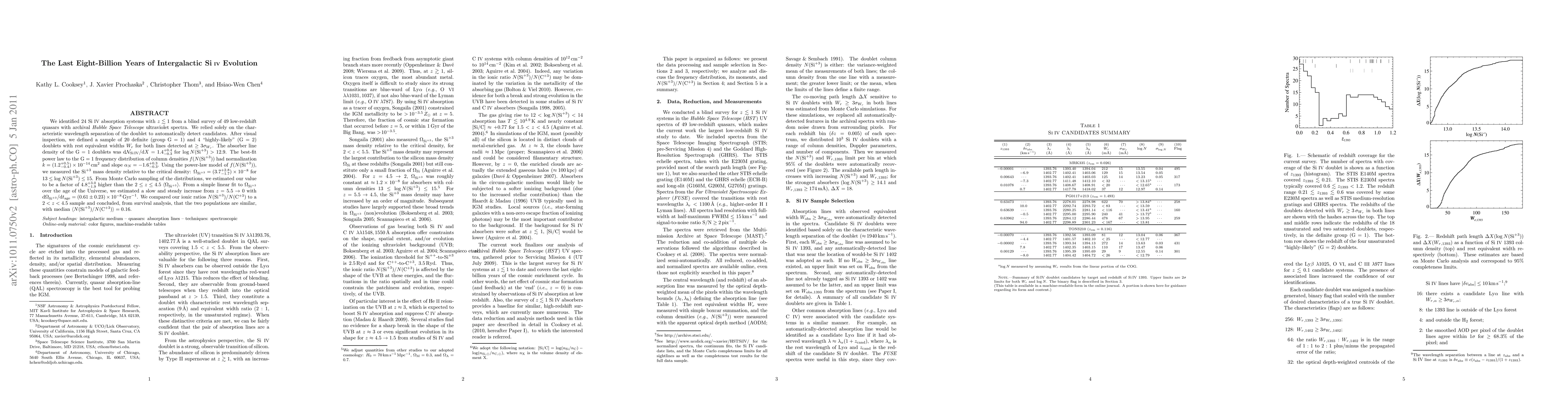 absorber line density of the G = 1 doublets was dN_SiIV/dX = 1.4+0.4/-0.3 for