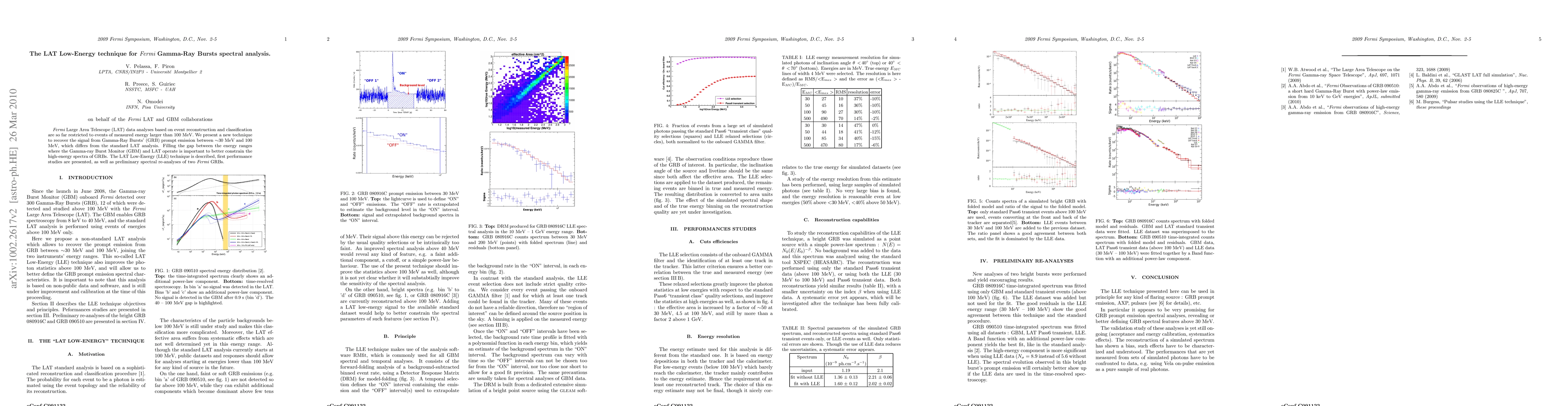 The paper introduces a new LAT Low-Energy (LLE) technique to analyze Gamma-Ray Bursts' (GRB) prompt emission between 30 MeV and 100 MeV, filling the energy gap between GBM and LAT. Initial performance studies and preliminary spectral re-analyses of two Fermi GRBs demonstrate the technique's potential.