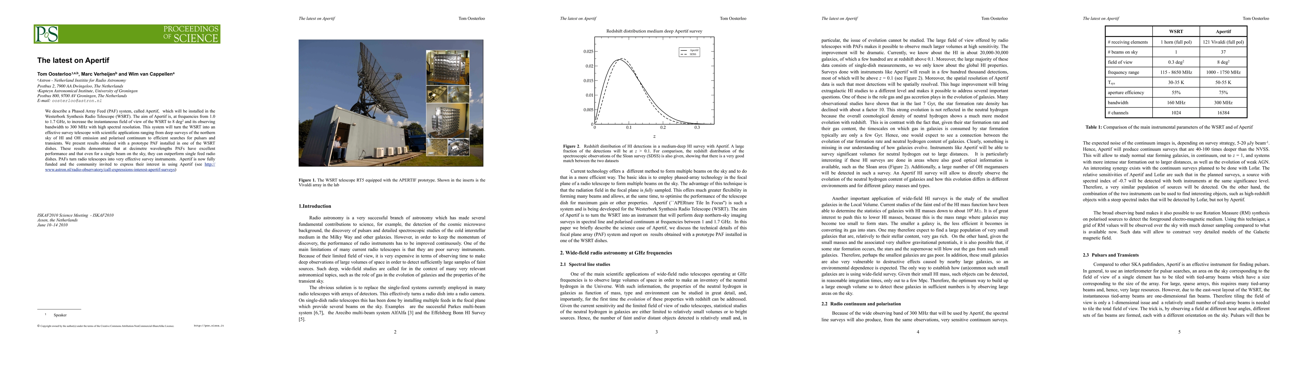 The Apertif Phased Array Feed system aims to enhance the Westerbork Synthesis Radio Telescope's field of view and bandwidth, transforming it into a powerful survey telescope for various scientific observations. Initial prototype results show superior performance compared to traditional single feed radio dishes.