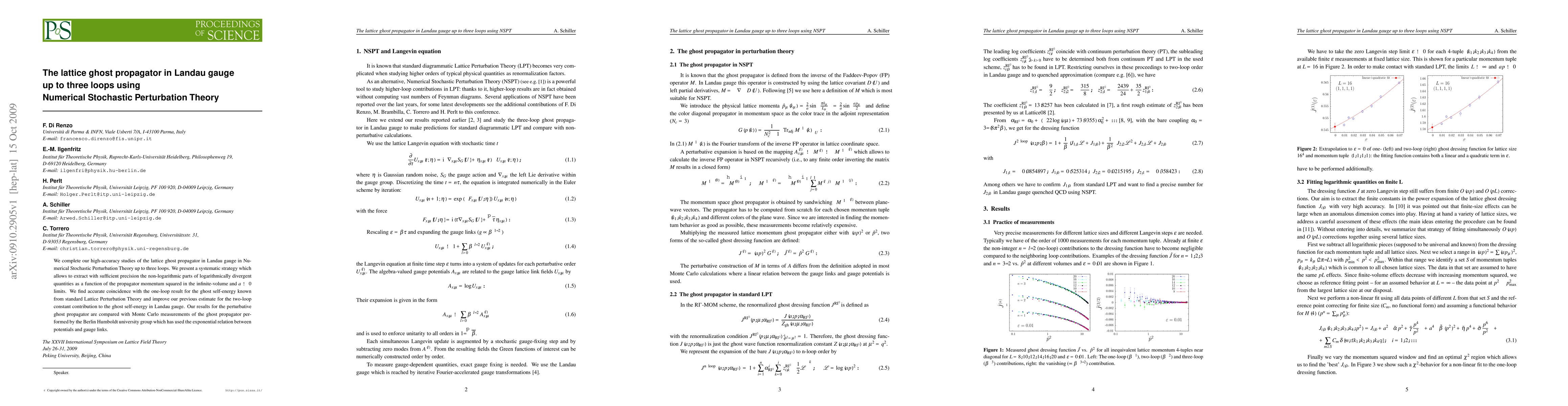 This paper presents high-accuracy studies of the lattice ghost propagator in Landau gauge using Numerical Stochastic Perturbation Theory up to three loops, achieving precise extraction of non-logarithmic parts of divergent quantities. The results show agreement with one-loop results and improved estimates for the two-loop constant contribution, and are compared with Monte Carlo measurements from the Berlin Humboldt university group.