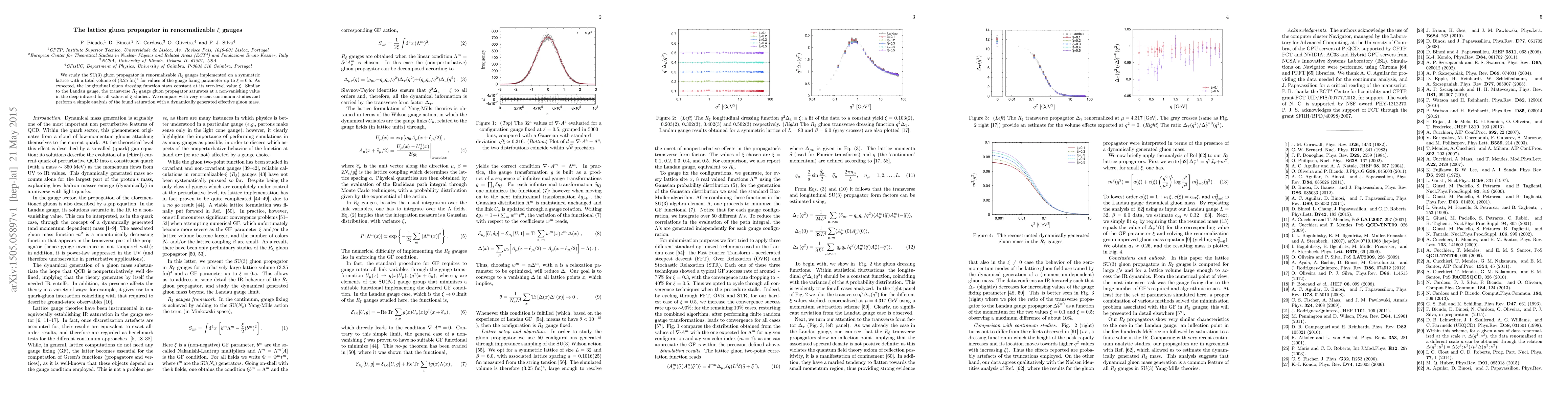 This paper investigates the SU(3) gluon propagator in renormalizable $R_\xi$ gauges on a lattice, finding that the transverse gluon propagator saturates at a non-zero value in the infrared regime, similar to the Landau gauge. The study compares lattice results with recent continuum studies and analyzes the saturation in terms of a dynamically generated effective gluon mass.