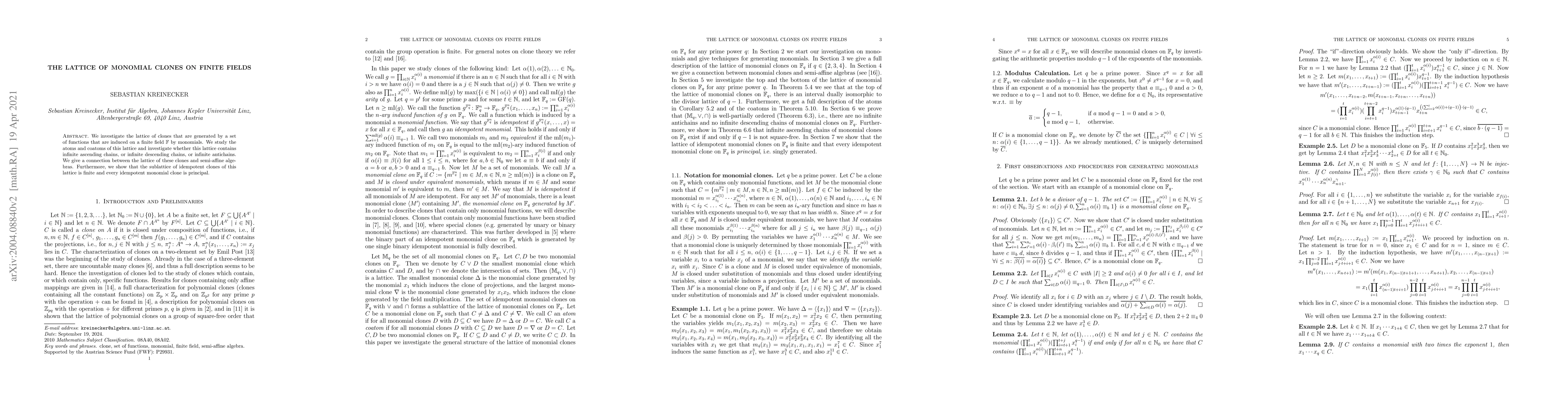 This research paper investigates the lattice of clones generated by functions on finite fields, focusing on their structure and connections to semi-affine algebras.