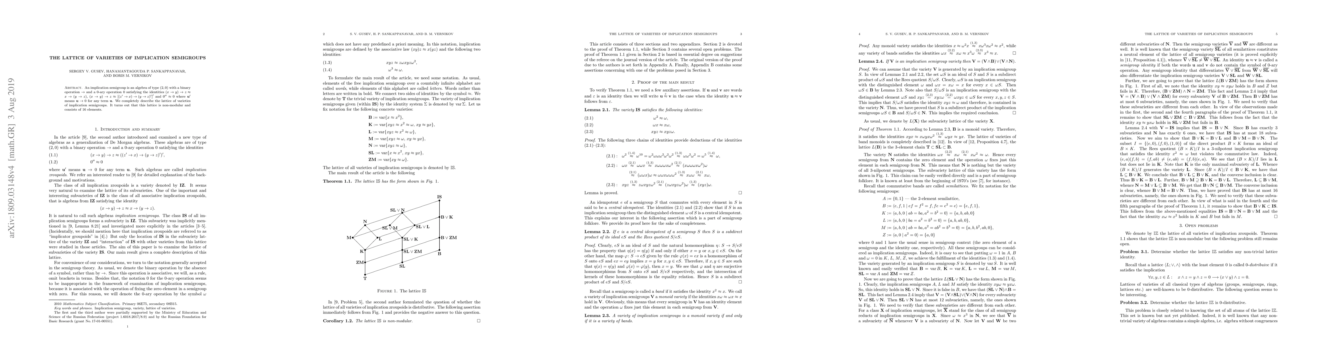 The paper presents a complete description of the lattice of varieties of implication semigroups, identifying 16 elements and proving its non-modularity, which is a significant technical contribution to the field of universal algebra.