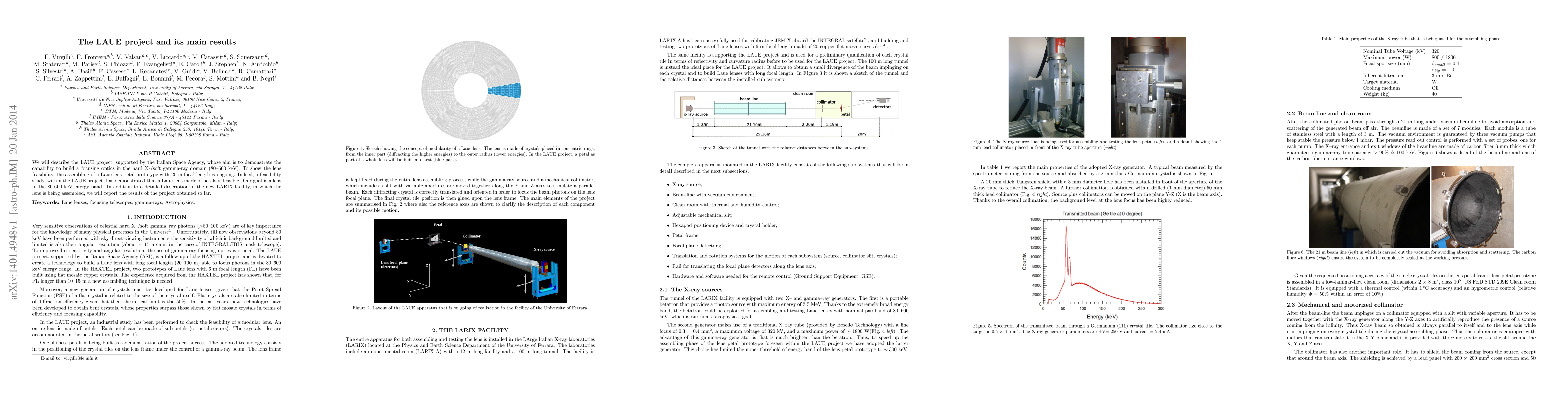 The LAUE project, funded by the Italian Space Agency, aims to develop focusing optics for hard X-ray to soft gamma-ray imaging (80-600 keV). A prototype Laue lens with a 20 m focal length is under construction, demonstrating the feasibility of such lenses in this energy band.