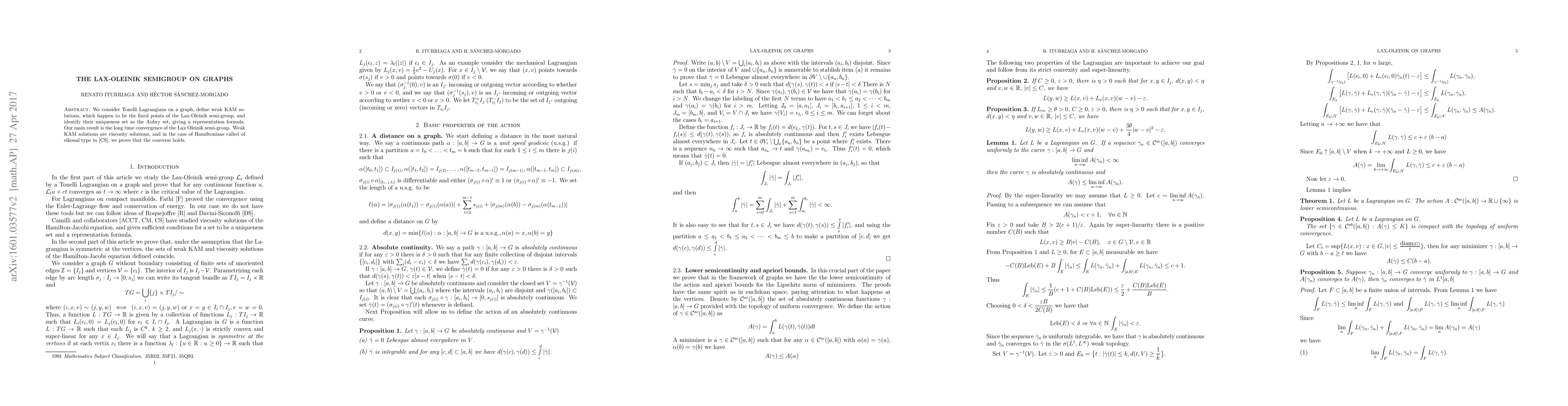 This paper defines weak KAM solutions on graphs using Tonelli Lagrangians and establishes them as fixed points of the Lax-Oleinik semi-group. The authors prove the long-time convergence of this semi-group and identify the Aubry set as the uniqueness set of these solutions.