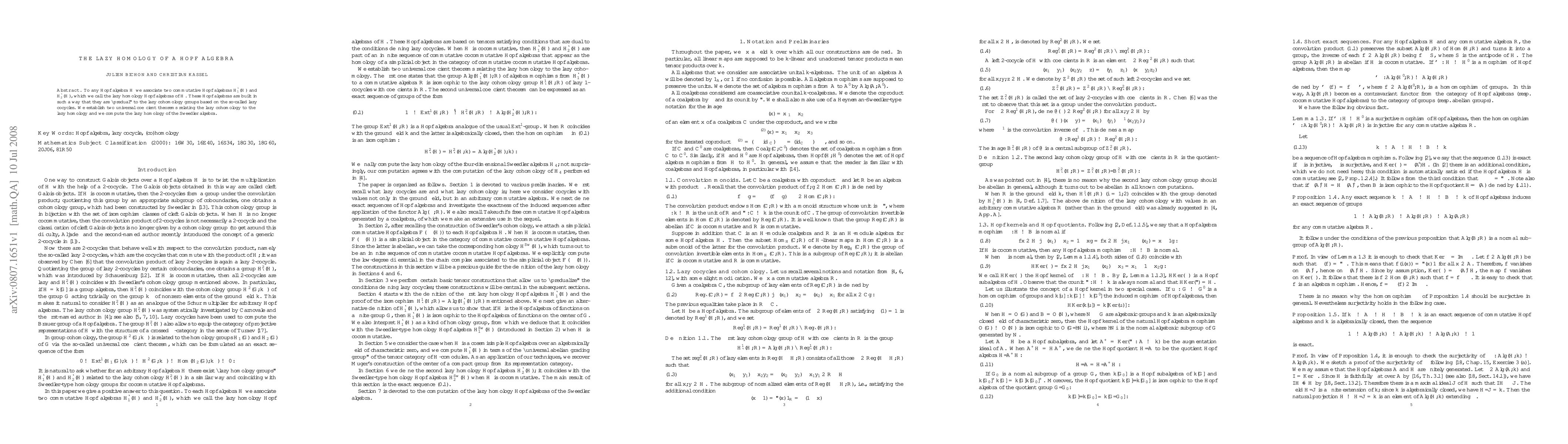 This paper introduces the concept of lazy homology for Hopf algebras, associating two commutative Hopf algebras to any given Hopf algebra H. It establishes connections between these homology algebras and lazy cohomology groups via universal coefficient theorems, and computes specific examples including group algebras and the Sweedler algebra.