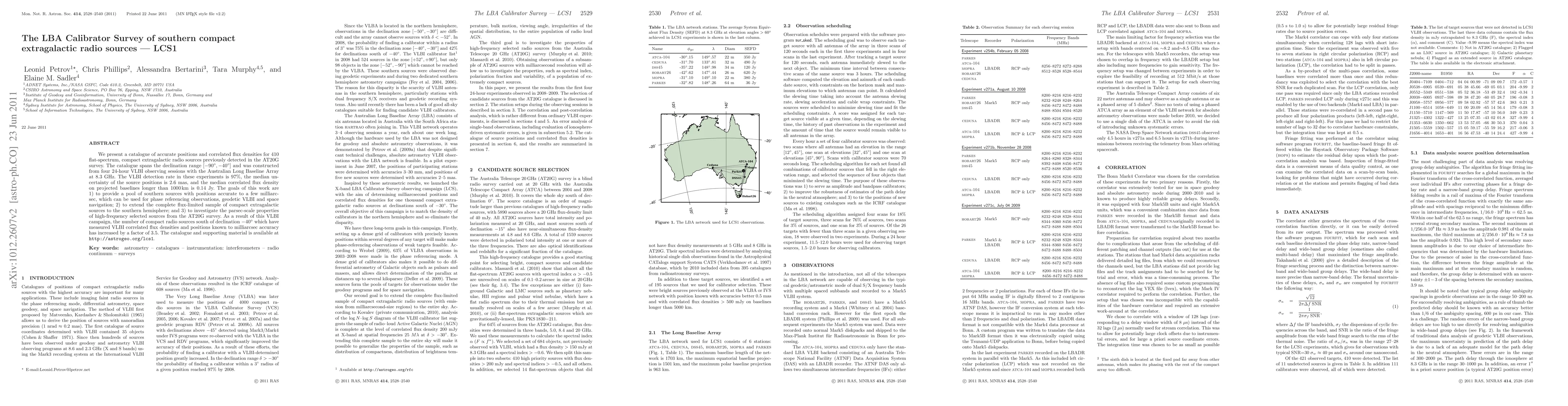 We present a catalogue of positions and correlated flux densities of 410 flat-spectrum, compact extragalactic radio sources, previously detected in the AT20G survey. The catalogue spans the declination range -90deg, -40deg and was constructed from four 24 hour VLBI observing sessions with the Australian Long Baseline Array made at 8.3 GHz. The detection rate in these experiments is 97%. The median uncertainty of source positions is 2.6 mas, the median correlated flux density at baseline projections lengths longer than 1000 km is 0.14 Jy. The goal of this work is 1) to provide a pool of sources with positions known at the milliarcsecond level of accuracy that are needed for phase referencing observations, for geodetic VLBI, and for space navigation; 2) to extend the complete flux-limited sample of compact extragalactic sources to the southern hemisphere; and 3) to investigate parsec-scale properties of high-frequency selected sources from the AT20G survey. As a result of the campaign, the number of compact radio sources with declinations < -40deg detectable with VLBI with measured correlated flux densities and positions known with the milliarcsec level of accuracies increased by a factor of 3.5. The catalogue and supporting material is available at http://astrogeo.org/lcs1 .