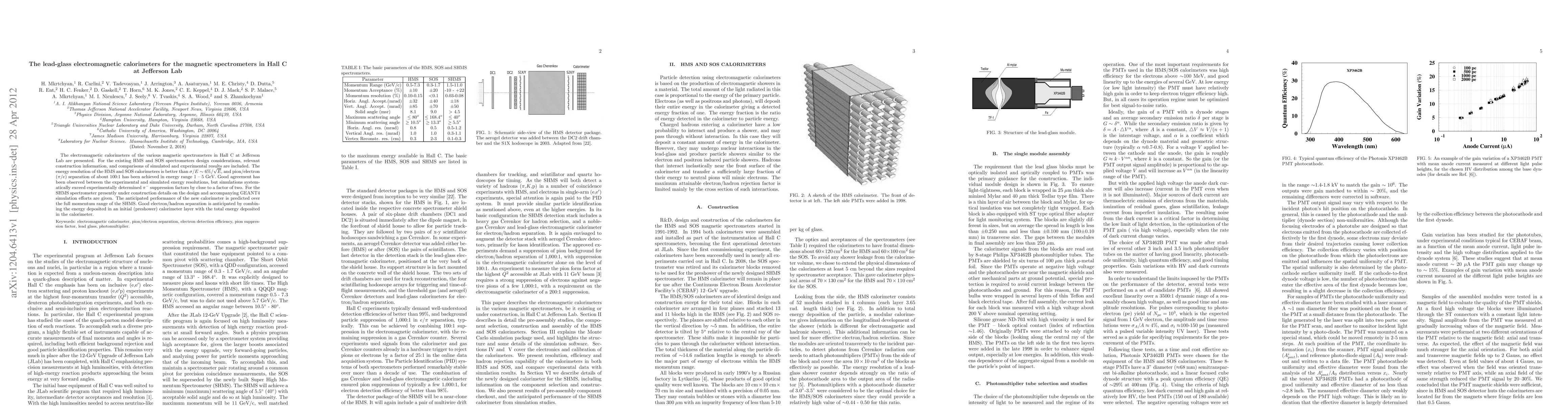 This paper details the electromagnetic calorimeters for the HMS, SOS, and SHMS spectrometers in Hall C at Jefferson Lab, highlighting their design, construction, and performance. The HMS and SOS calorimeters achieve energy resolutions better than 6%/√E and pion/electron separation ratios of 100:1 in the 1-5 GeV energy range.