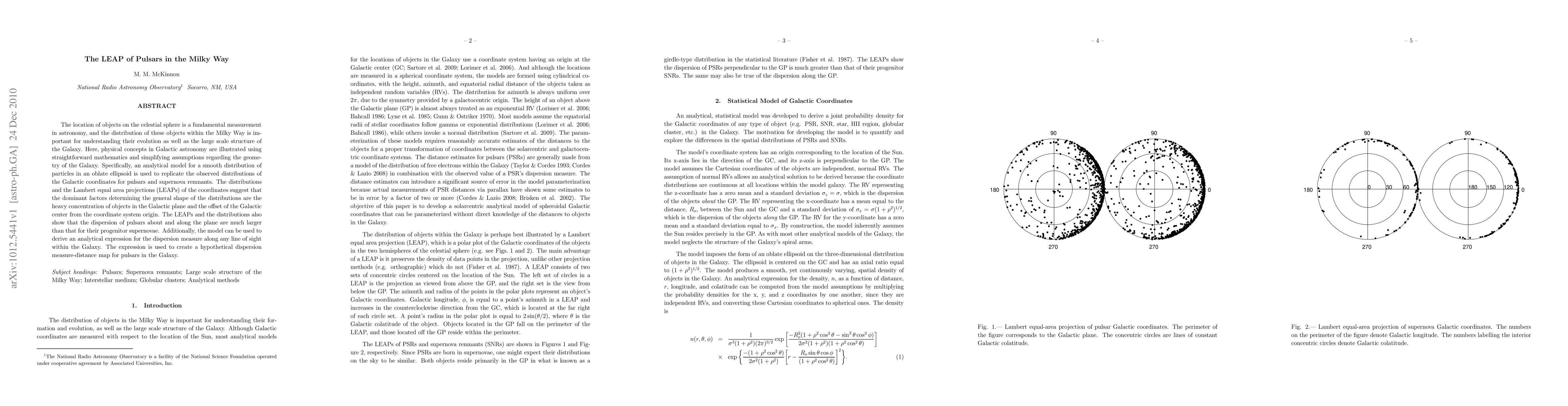 The location of objects on the celestial sphere is a fundamental measurement in astronomy, and the distribution of these objects within the Milky Way is important for understanding their evolution as well as the large scale structure of the Galaxy. Here, physical concepts in Galactic astronomy are illustrated using straightforward mathematics and simplifying assumptions regarding the geometry of the Galaxy. Specifically, an analytical model for a smooth distribution of particles in an oblate ellipsoid is used to replicate the observed distributions of the Galactic coordinates for pulsars and supernova remnants. The distributions and the Lambert equal area projections (LEAPs) of the coordinates suggest that the dominant factors determining the general shape of the distributions are the heavy concentration of objects in the Galactic plane and the offset of the Galactic center from the coordinate system origin. The LEAPs and the distributions also show that the dispersion of pulsars about and along the plane are much larger than that for their progenitor supernovae. Additionally, the model can be used to derive an analytical expression for the dispersion measure along any line of sight within the Galaxy. The expression is used to create a hypothetical dispersion measure-distance map for pulsars in the Galaxy.