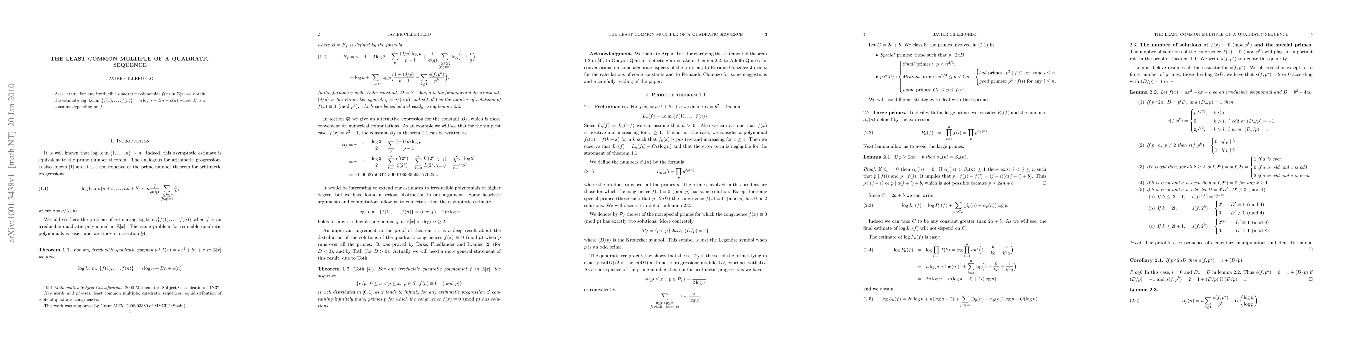 This research paper estimates the growth rate of the least common multiple (LCM) of a sequence of quadratic polynomials, showing it grows at a rate of n log n with an additional constant factor.