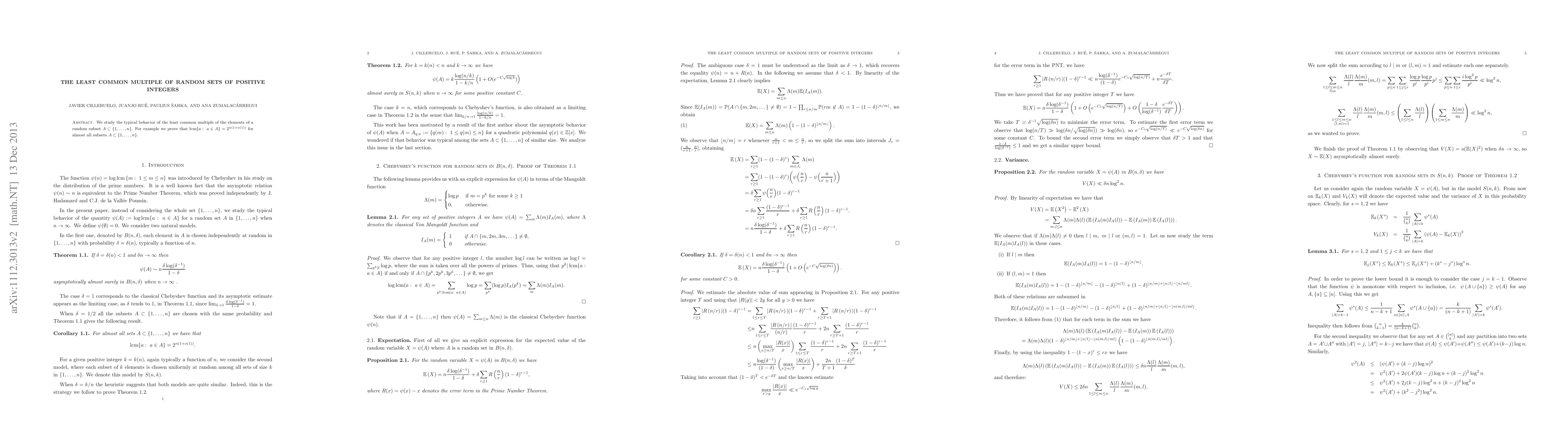 The paper investigates the typical behavior of the least common multiple (LCM) of elements in a random subset of positive integers up to n. It proves that for almost all subsets A, the LCM is approximately 2^n(1+o(1)).