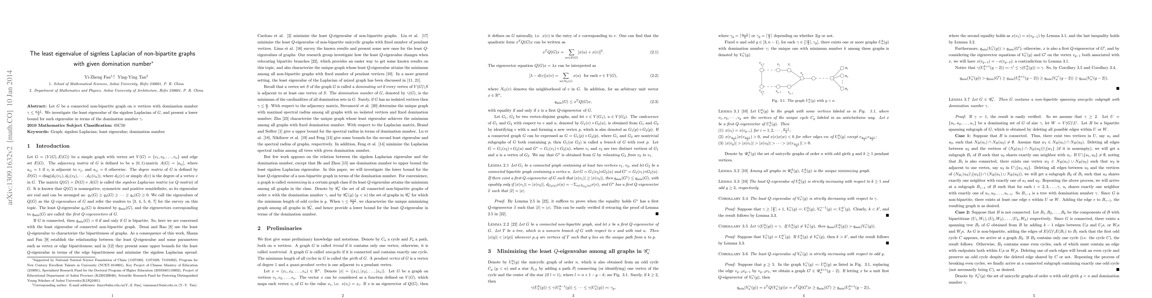 Summary: This paper explores the least eigenvalue of the signless Laplacian for connected non-bipartite graphs with a given domination number $\gamma \le \frac{n+1}{3}$, presenting a lower bound for this eigenvalue in terms of $\gamma$.