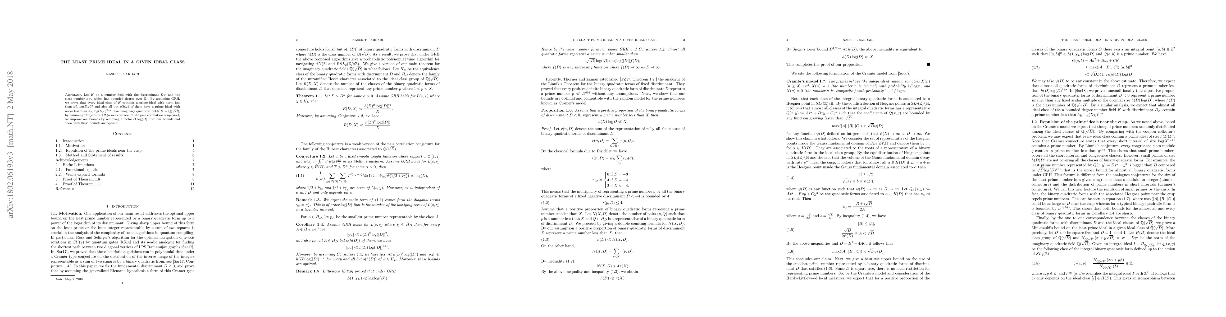 The paper presents a refined analysis of prime ideals in ideal classes of number fields, generalizing Minkowski's bound and providing improved estimates under specific assumptions.