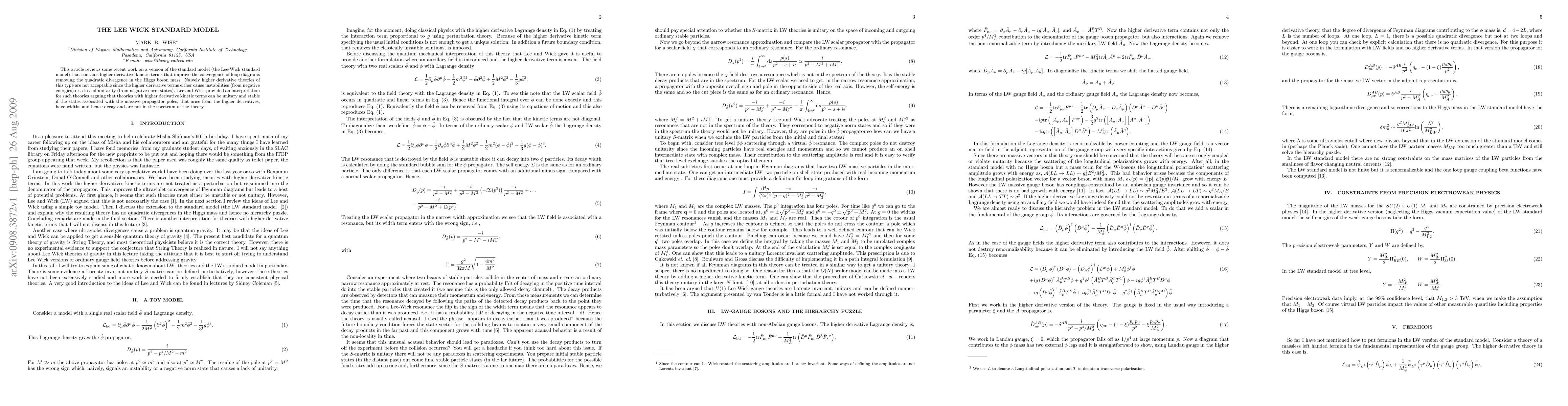 This paper reviews the Lee-Wick standard model, which incorporates higher derivative kinetic terms to improve loop diagram convergence and eliminate quadratic divergence in the Higgs boson mass. The authors argue that these higher derivative terms can be stable and unitary if the associated states decay due to their widths, avoiding negative energies and norm states.