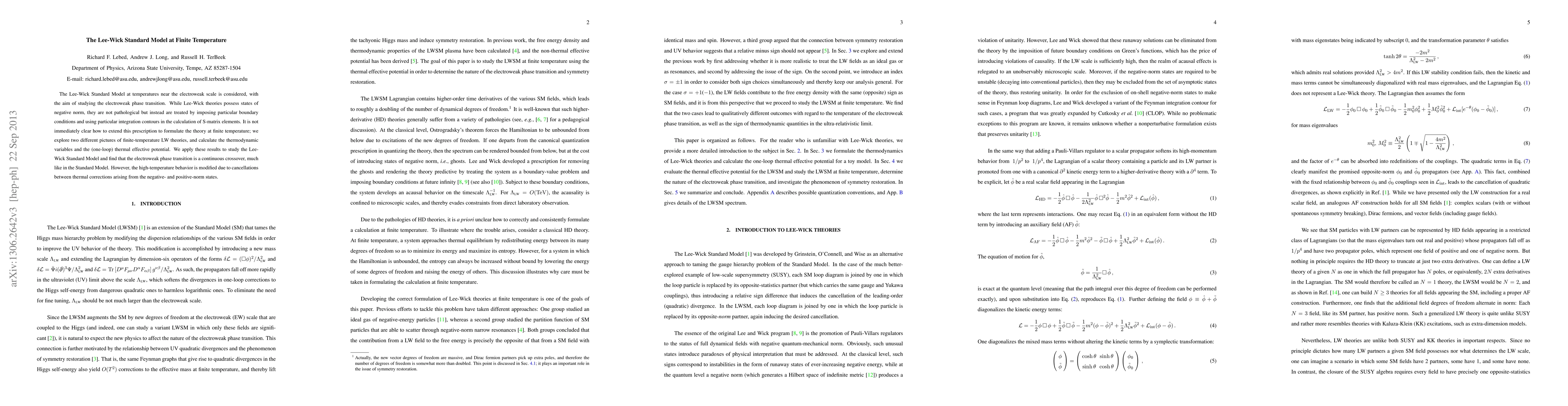 This paper explores the Lee-Wick Standard Model at finite temperatures, focusing on the electroweak phase transition. It finds that the transition is a continuous crossover, similar to the Standard Model, but with modifications in high-temperature behavior due to cancellations between thermal corrections from negative- and positive-norm states.