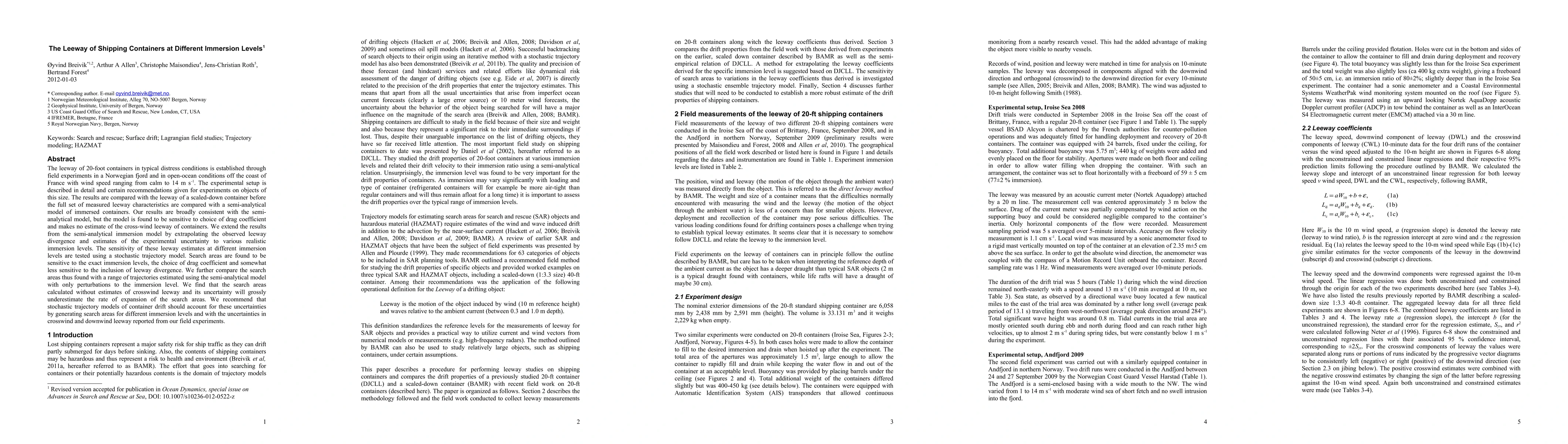 This study investigates the leeway of 20-foot shipping containers in various immersion levels through field experiments and compares results with a semi-analytical model. The findings suggest that search areas for container drift are significantly underestimated without considering uncertainties in crosswind leeway and immersion levels.