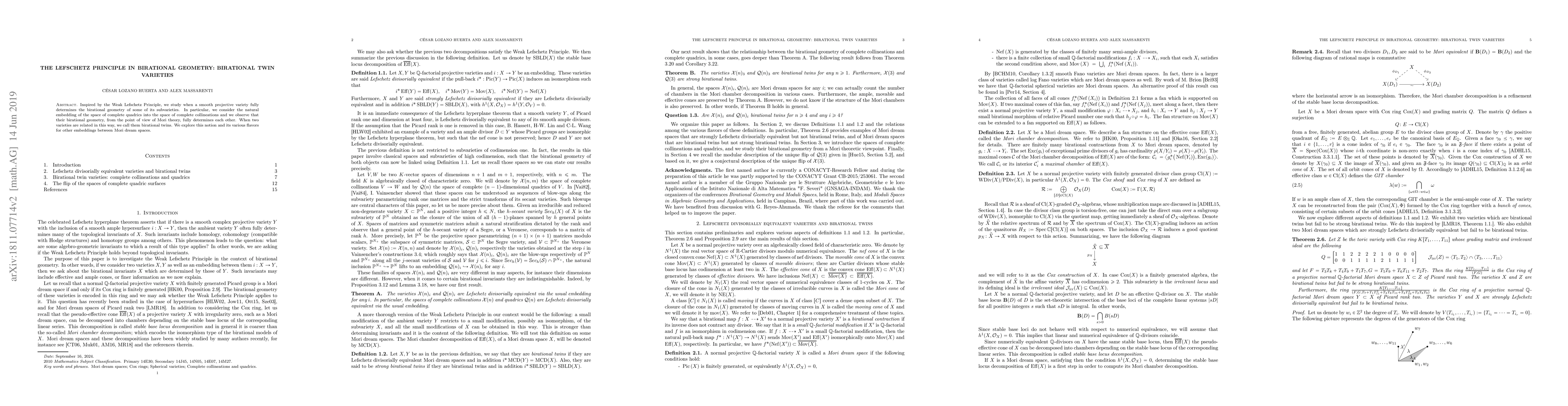 Inspired by the Weak Lefschetz Principle, we study when a smooth projective variety fully determines the birational geometry of some of its subvarieties. In particular, we consider the natural embedding of the space of complete quadrics into the space of complete collineations and we observe that their birational geometry, from the point of view of Mori theory, fully determines each other. When two varieties are related in this way, we call them birational twins. We explore this notion and its various flavors for other embeddings between Mori dream spaces.