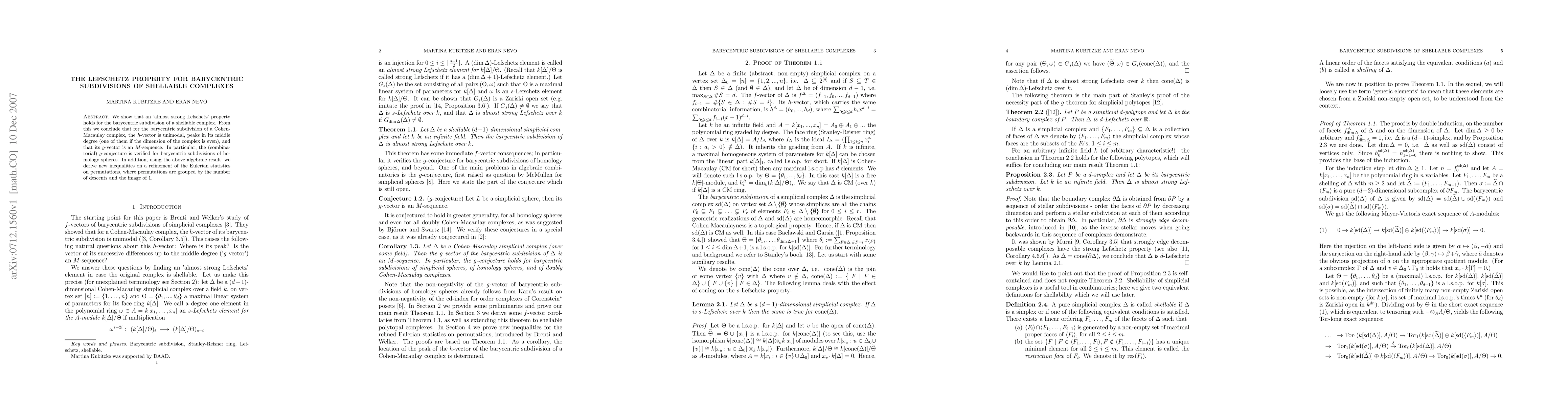 This paper demonstrates that the barycentric subdivision of a shellable complex exhibits an 'almost strong Lefschetz' property, leading to unimodal $h$-vectors and $M$-sequence $g$-vectors for Cohen-Macaulay complexes, thus verifying the combinatorial $g$-conjecture for homology spheres. Additionally, it derives new inequalities on refined Eulerian statistics for permutations.