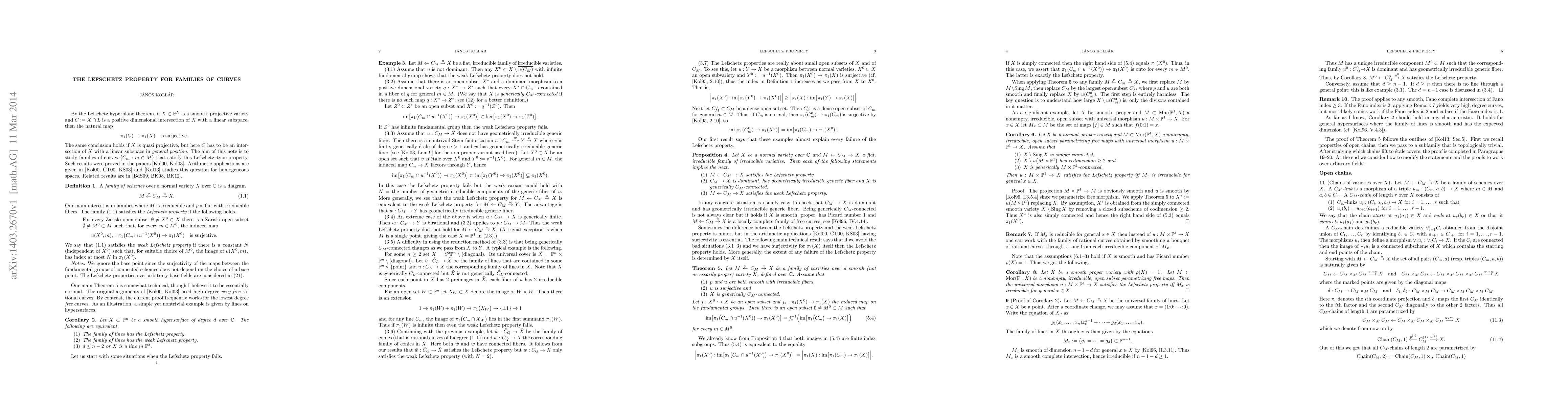 By the Lefschetz hyperplane theorem, if X is a smooth quasi-projective variety and C a general curve section of X then the fundamental group of C surjects onto the fundamental group of X. Here we consider when this conclusion holds for a general member of an arbitrary family of curves that covers X. The most interesting case is families of rational curves.