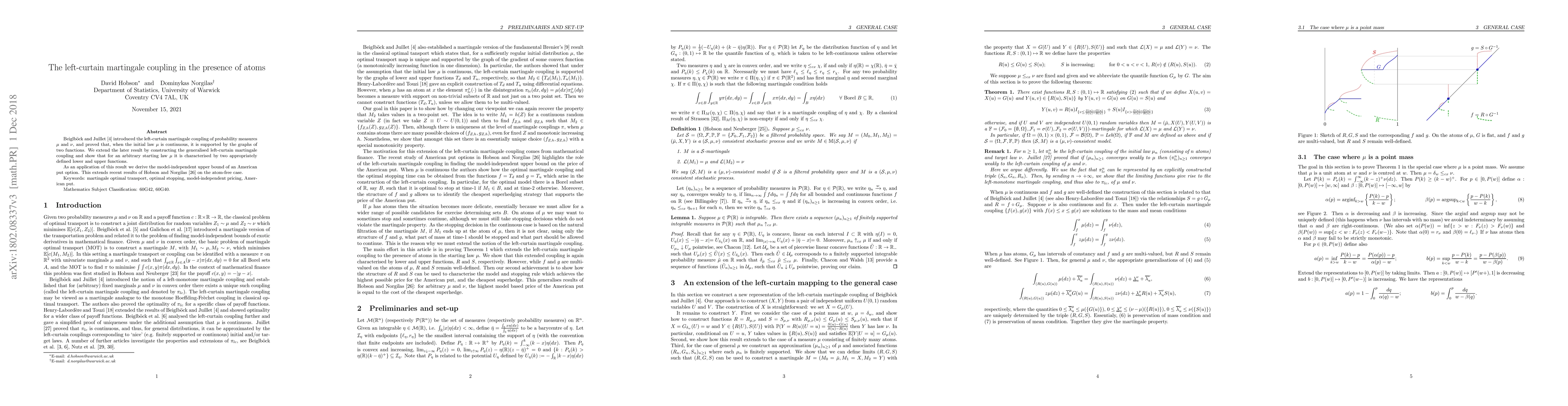 Beiglb\"ock and Juillet ("On a problem of optimal transport under marginal martingale constraints") introduced the left-curtain martingale coupling of probability measures $\mu$ and $\nu$, and proved that, when the initial law $\mu$ is continuous, it is supported by the graphs of two functions. We extend the later result by constructing the generalised left-curtain martingale coupling and show that for an arbitrary starting law $\mu$ it is characterised by two appropriately defined lower and upper functions. As an application of this result we derive the model-independent upper bound of an American put option. This extends recent results of Hobson and Norgilas ("Robust bounds for the American Put") on the atom-free case.